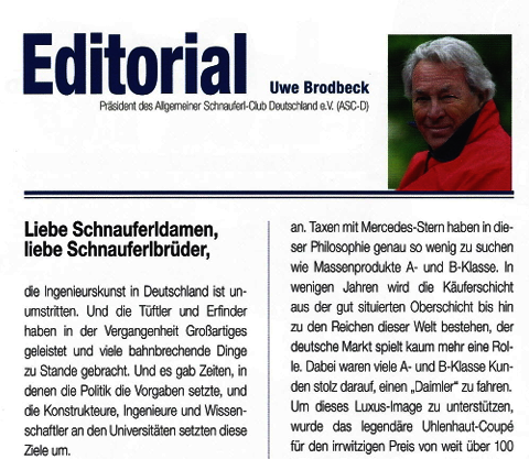 UWE BRODBECK schreibt im DAS SCHNAUFERL des allgemeinen Schnauferl-Club Deutschland