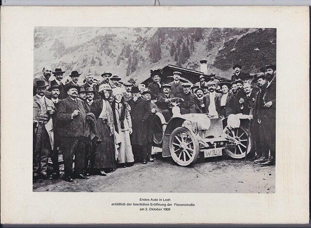 Oben ein Bild von Interesse, das erste Auto in Lech am Arlberg.